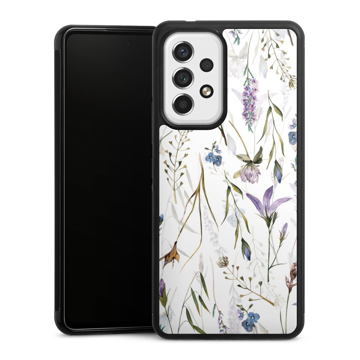 We print your design on the back of the glass inlay and then connect it firmly to the silicone case ,so that nothing sticks out and everything looks like it was cast from one piece. In addition, the sturdy glass element is protected from scratches by an additional coating and ensures a slight reflection on the shiny print image.