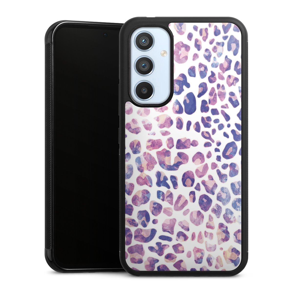 We print your design on the back of the glass inlay and then connect it firmly to the silicone case ,so that nothing sticks out and everything looks like it was cast from one piece. In addition, the sturdy glass element is protected from scratches by an additional coating and ensures a slight reflection on the shiny print image.
