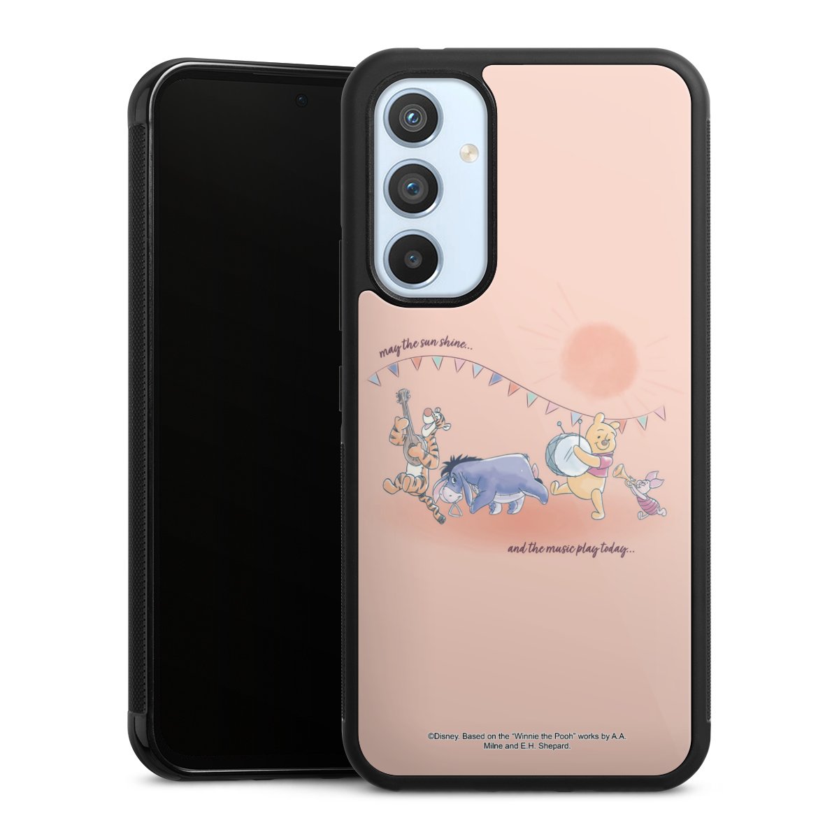 We print your design on the back of the glass inlay and then connect it firmly to the silicone case ,so that nothing sticks out and everything looks like it was cast from one piece. In addition, the sturdy glass element is protected from scratches by an additional coating and ensures a slight reflection on the shiny print image.
