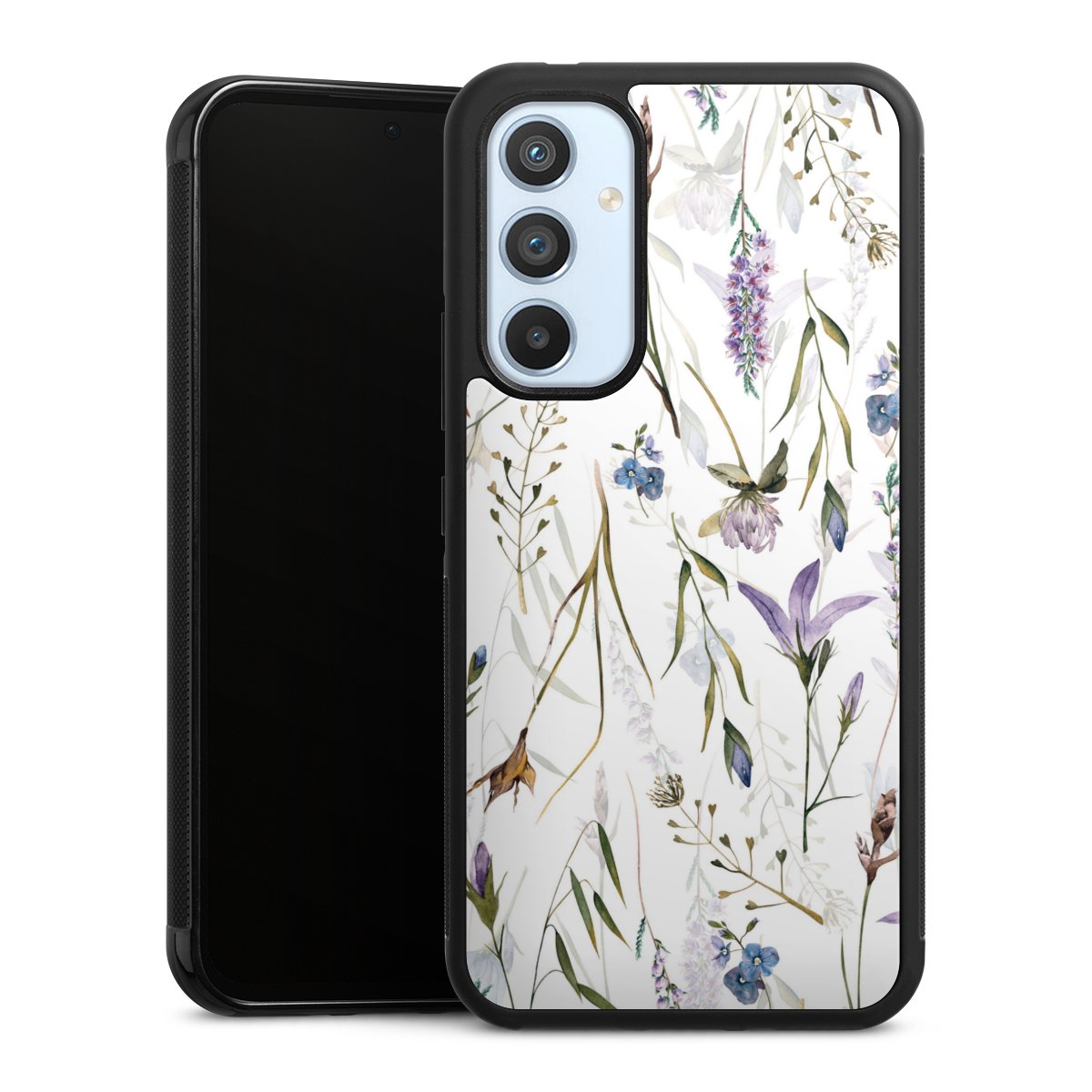 We print your design on the back of the glass inlay and then connect it firmly to the silicone case ,so that nothing sticks out and everything looks like it was cast from one piece. In addition, the sturdy glass element is protected from scratches by an additional coating and ensures a slight reflection on the shiny print image.
