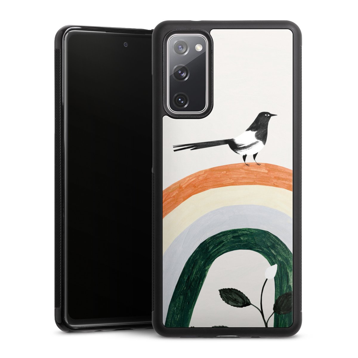 We print your design on the back of the glass inlay and then connect it firmly to the silicone case ,so that nothing sticks out and everything looks like it was cast from one piece. In addition, the sturdy glass element is protected from scratches by an additional coating and ensures a slight reflection on the shiny print image.