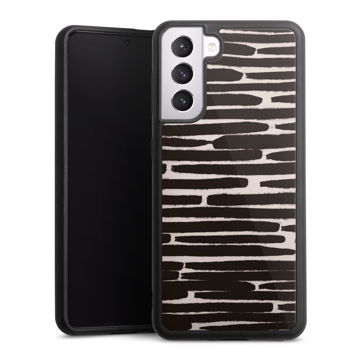 We print your design on the back of the glass inlay and then connect it firmly to the silicone case ,so that nothing sticks out and everything looks like it was cast from one piece. In addition, the sturdy glass element is protected from scratches by an additional coating and ensures a slight reflection on the shiny print image.