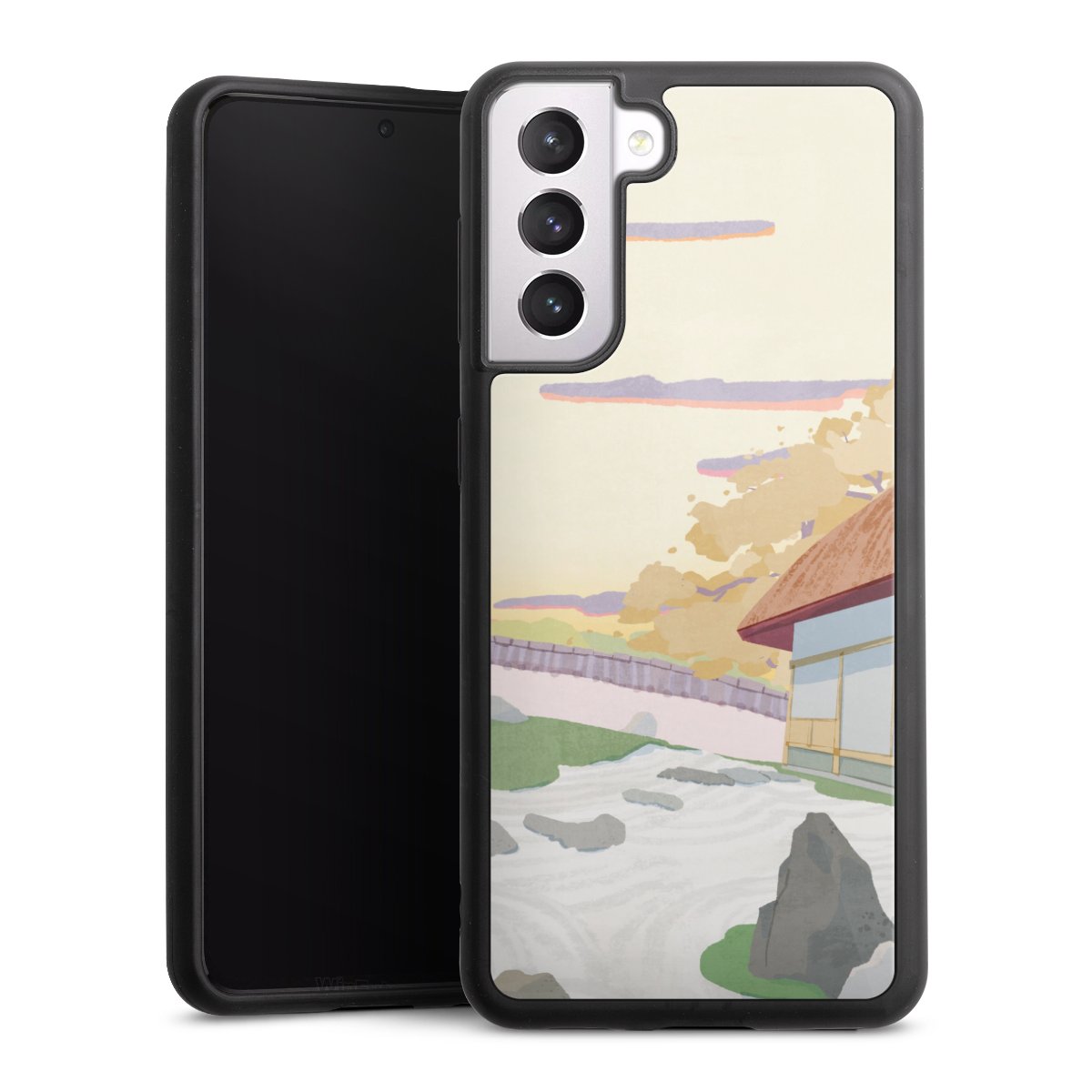 We print your design on the back of the glass inlay and then connect it firmly to the silicone case ,so that nothing sticks out and everything looks like it was cast from one piece. In addition, the sturdy glass element is protected from scratches by an additional coating and ensures a slight reflection on the shiny print image.