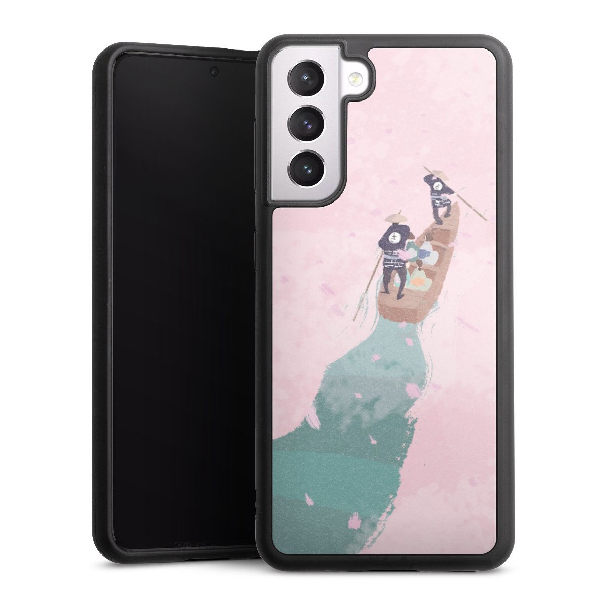 We print your design on the back of the glass inlay and then connect it firmly to the silicone case ,so that nothing sticks out and everything looks like it was cast from one piece. In addition, the sturdy glass element is protected from scratches by an additional coating and ensures a slight reflection on the shiny print image.