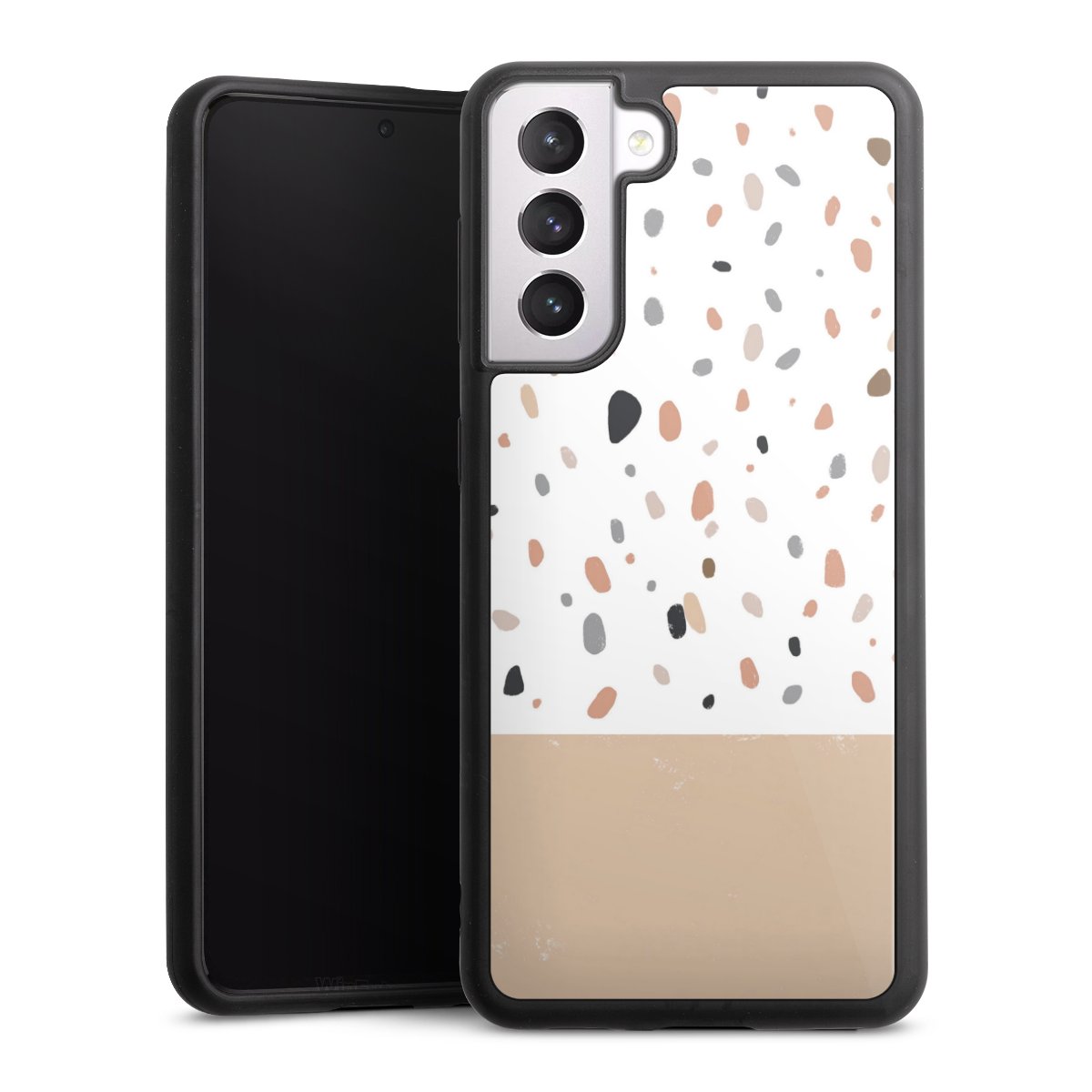 We print your design on the back of the glass inlay and then connect it firmly to the silicone case ,so that nothing sticks out and everything looks like it was cast from one piece. In addition, the sturdy glass element is protected from scratches by an additional coating and ensures a slight reflection on the shiny print image.