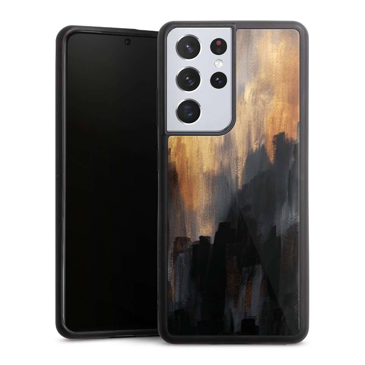 We print your design on the back of the glass inlay and then connect it firmly to the silicone case ,so that nothing sticks out and everything looks like it was cast from one piece. In addition, the sturdy glass element is protected from scratches by an additional coating and ensures a slight reflection on the shiny print image.