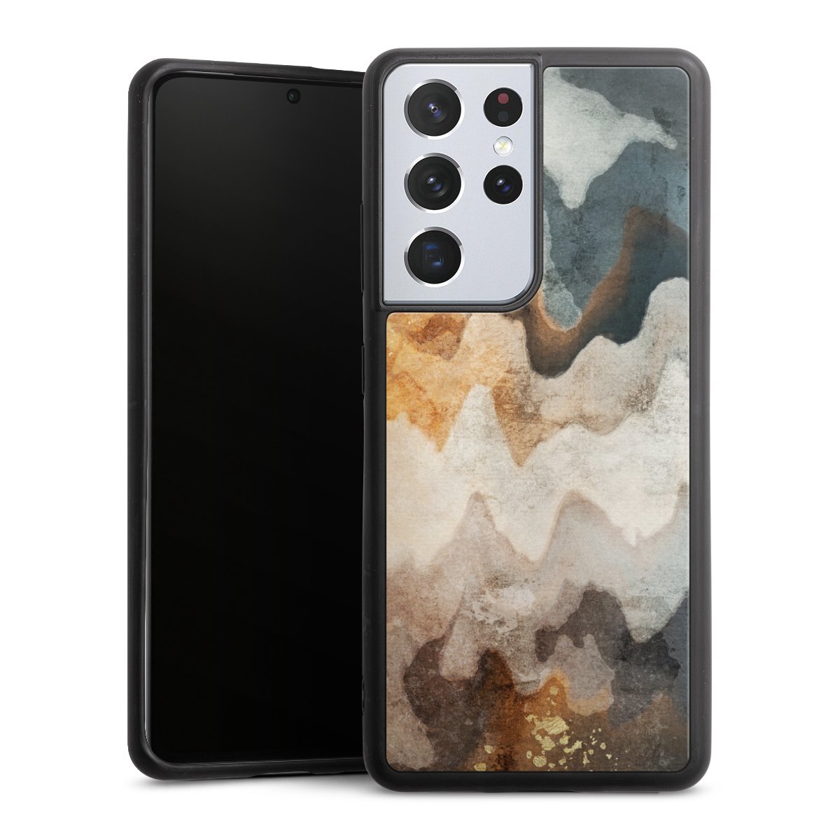 We print your design on the back of the glass inlay and then connect it firmly to the silicone case ,so that nothing sticks out and everything looks like it was cast from one piece. In addition, the sturdy glass element is protected from scratches by an additional coating and ensures a slight reflection on the shiny print image.