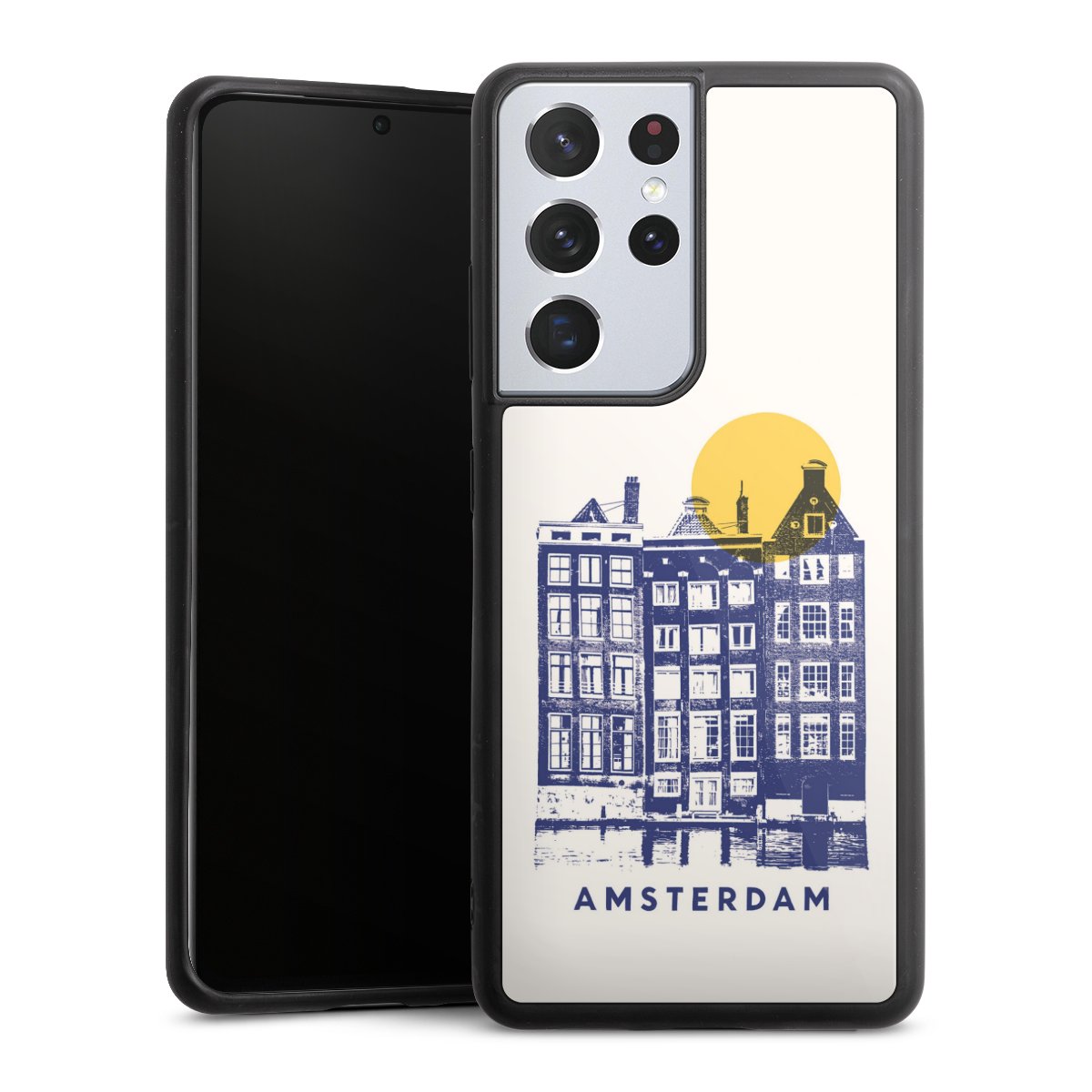 We print your design on the back of the glass inlay and then connect it firmly to the silicone case ,so that nothing sticks out and everything looks like it was cast from one piece. In addition, the sturdy glass element is protected from scratches by an additional coating and ensures a slight reflection on the shiny print image.