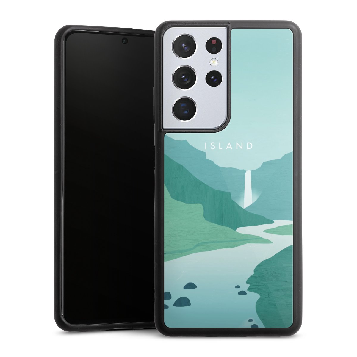 We print your design on the back of the glass inlay and then connect it firmly to the silicone case ,so that nothing sticks out and everything looks like it was cast from one piece. In addition, the sturdy glass element is protected from scratches by an additional coating and ensures a slight reflection on the shiny print image.