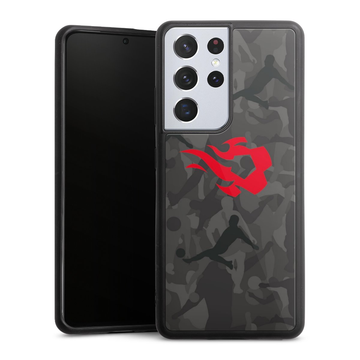 We print your design on the back of the glass inlay and then connect it firmly to the silicone case ,so that nothing sticks out and everything looks like it was cast from one piece. In addition, the sturdy glass element is protected from scratches by an additional coating and ensures a slight reflection on the shiny print image.