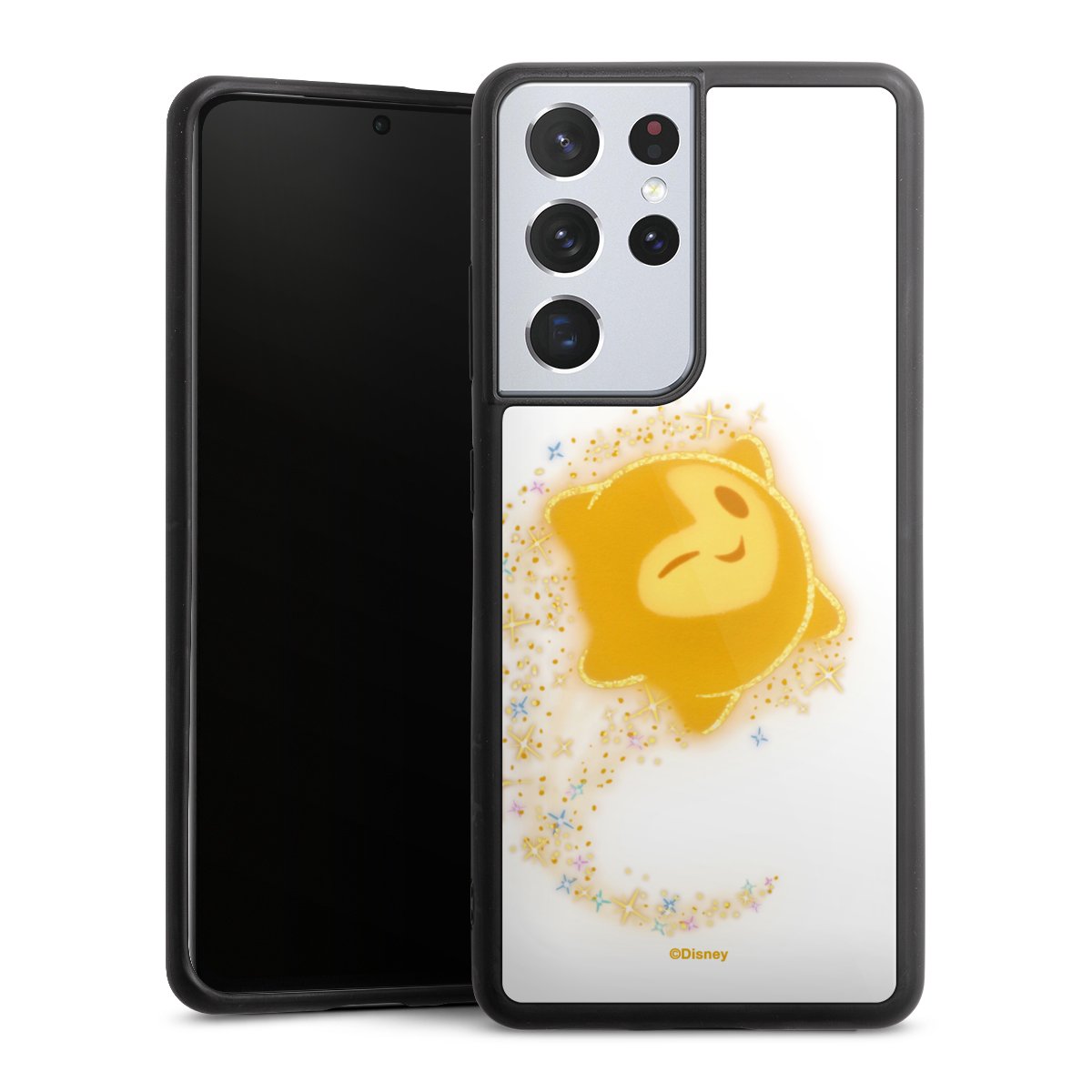 We print your design on the back of the glass inlay and then connect it firmly to the silicone case ,so that nothing sticks out and everything looks like it was cast from one piece. In addition, the sturdy glass element is protected from scratches by an additional coating and ensures a slight reflection on the shiny print image.