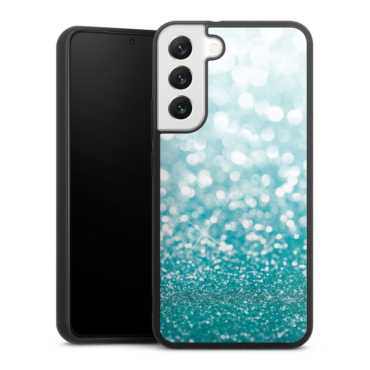 We print your design on the back of the glass inlay and then connect it firmly to the silicone case ,so that nothing sticks out and everything looks like it was cast from one piece. In addition, the sturdy glass element is protected from scratches by an additional coating and ensures a slight reflection on the shiny print image.