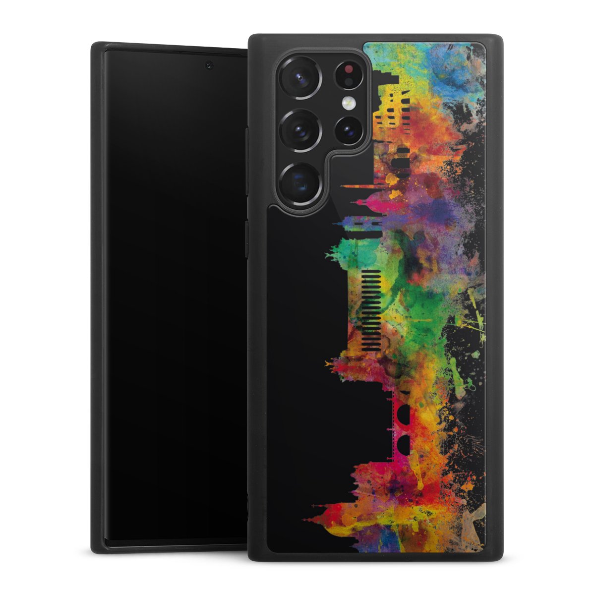 We print your design on the back of the glass inlay and then connect it firmly to the silicone case ,so that nothing sticks out and everything looks like it was cast from one piece. In addition, the sturdy glass element is protected from scratches by an additional coating and ensures a slight reflection on the shiny print image.