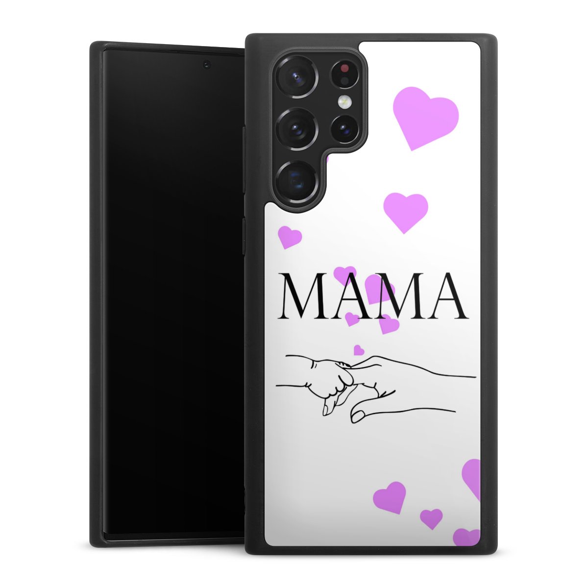 We print your design on the back of the glass inlay and then connect it firmly to the silicone case ,so that nothing sticks out and everything looks like it was cast from one piece. In addition, the sturdy glass element is protected from scratches by an additional coating and ensures a slight reflection on the shiny print image.