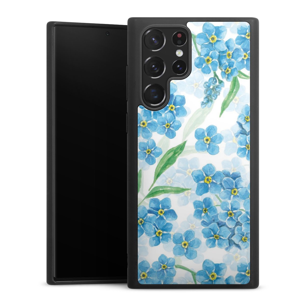 We print your design on the back of the glass inlay and then connect it firmly to the silicone case ,so that nothing sticks out and everything looks like it was cast from one piece. In addition, the sturdy glass element is protected from scratches by an additional coating and ensures a slight reflection on the shiny print image.