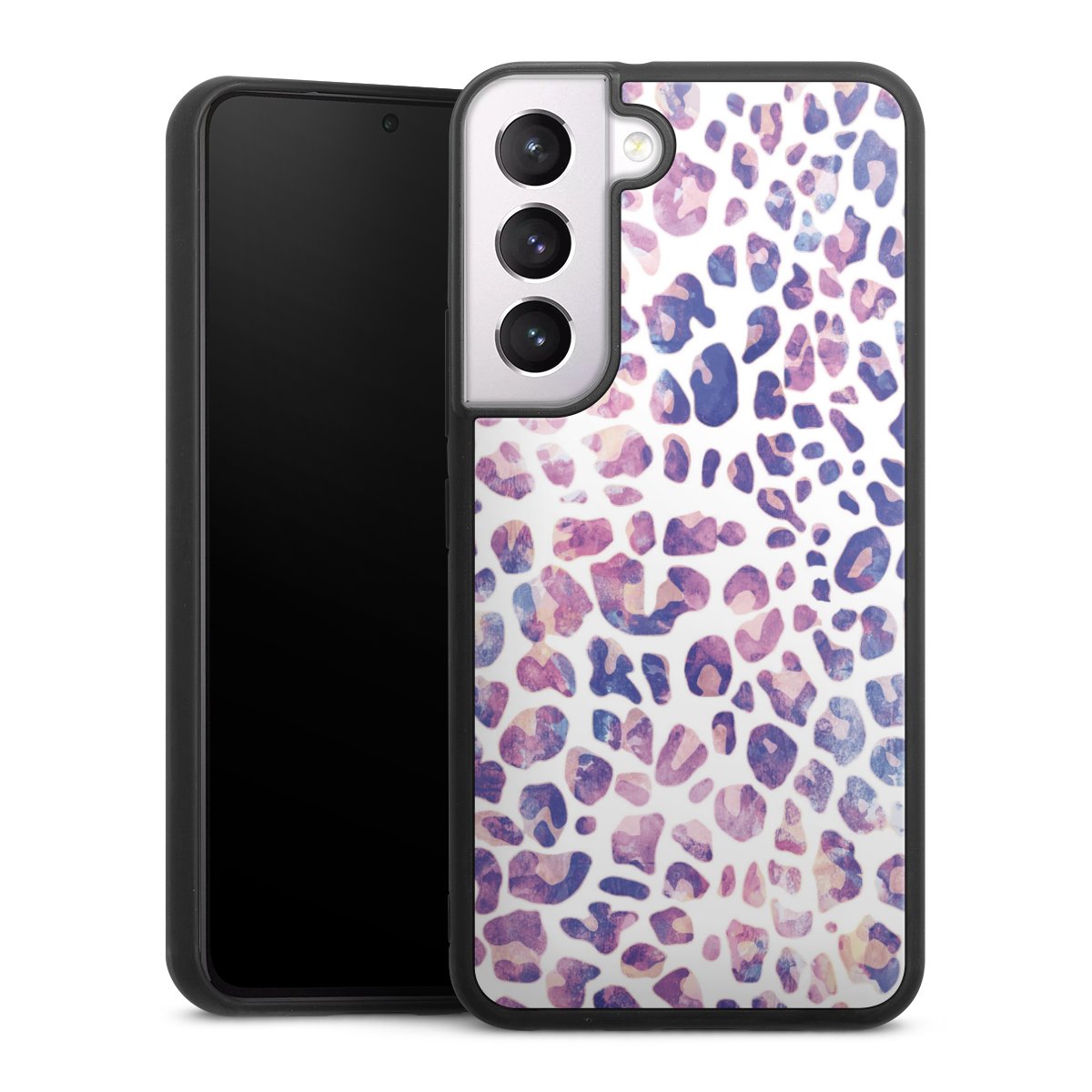 We print your design on the back of the glass inlay and then connect it firmly to the silicone case ,so that nothing sticks out and everything looks like it was cast from one piece. In addition, the sturdy glass element is protected from scratches by an additional coating and ensures a slight reflection on the shiny print image.