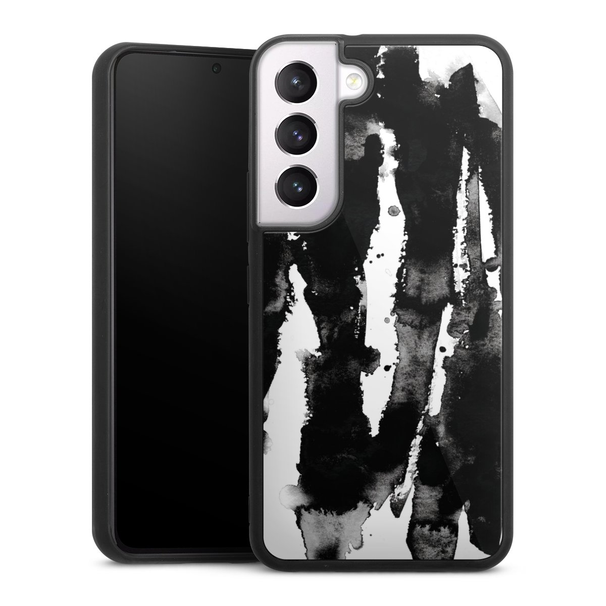 We print your design on the back of the glass inlay and then connect it firmly to the silicone case ,so that nothing sticks out and everything looks like it was cast from one piece. In addition, the sturdy glass element is protected from scratches by an additional coating and ensures a slight reflection on the shiny print image.