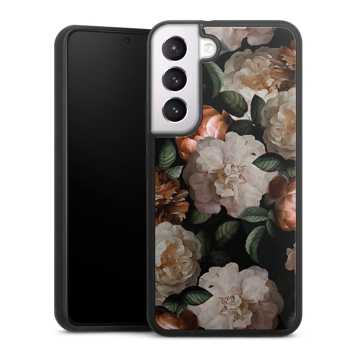 We print your design on the back of the glass inlay and then connect it firmly to the silicone case ,so that nothing sticks out and everything looks like it was cast from one piece. In addition, the sturdy glass element is protected from scratches by an additional coating and ensures a slight reflection on the shiny print image.