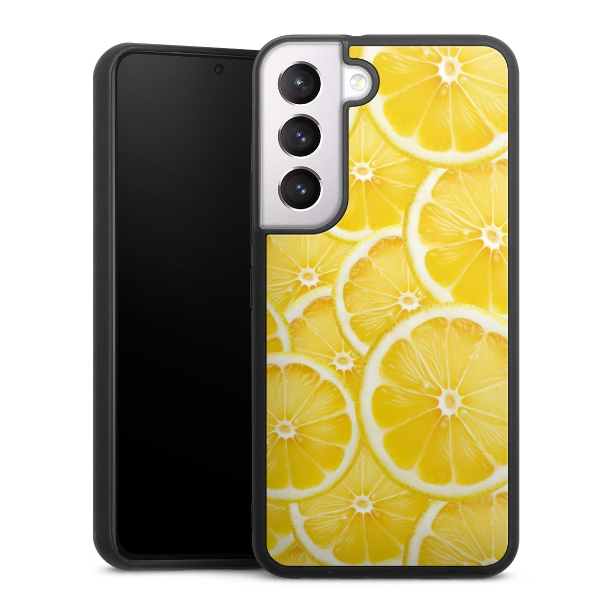 We print your design on the back of the glass inlay and then connect it firmly to the silicone case ,so that nothing sticks out and everything looks like it was cast from one piece. In addition, the sturdy glass element is protected from scratches by an additional coating and ensures a slight reflection on the shiny print image.