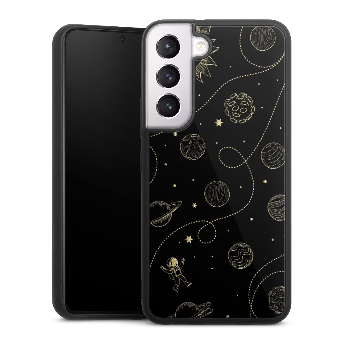 We print your design on the back of the glass inlay and then connect it firmly to the silicone case ,so that nothing sticks out and everything looks like it was cast from one piece. In addition, the sturdy glass element is protected from scratches by an additional coating and ensures a slight reflection on the shiny print image.