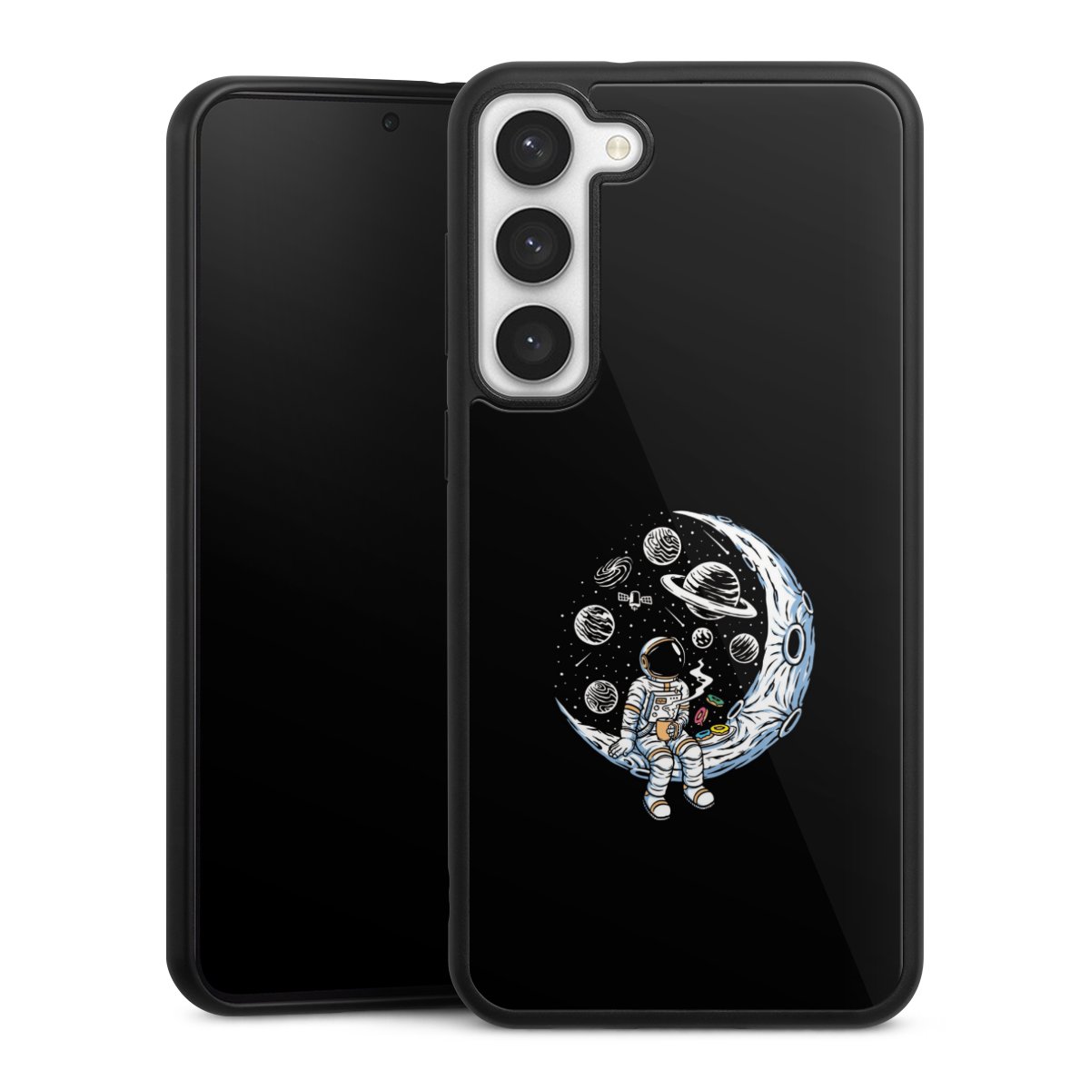 We print your design on the back of the glass inlay and then connect it firmly to the silicone case ,so that nothing sticks out and everything looks like it was cast from one piece. In addition, the sturdy glass element is protected from scratches by an additional coating and ensures a slight reflection on the shiny print image.