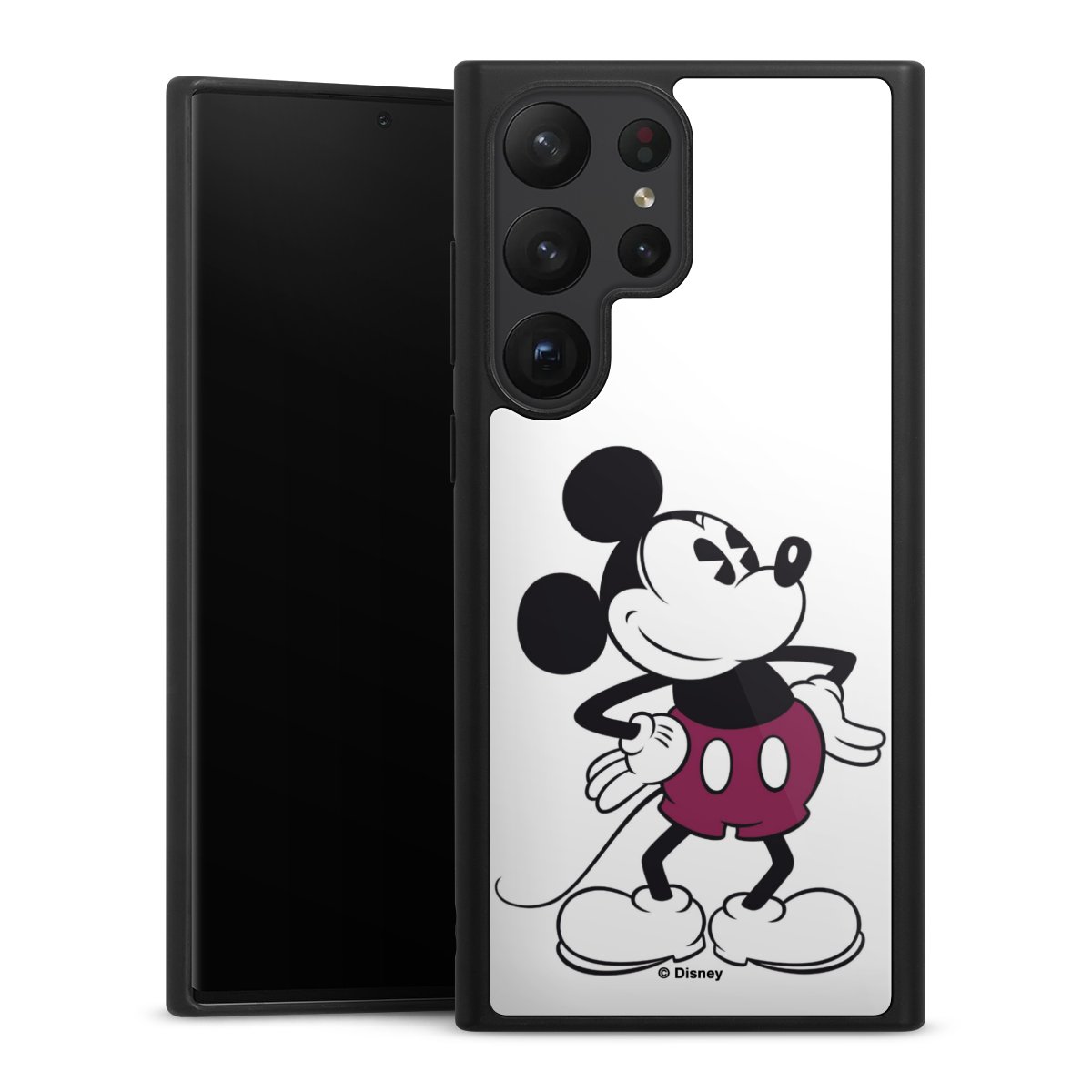 We print your design on the back of the glass inlay and then connect it firmly to the silicone case ,so that nothing sticks out and everything looks like it was cast from one piece. In addition, the sturdy glass element is protected from scratches by an additional coating and ensures a slight reflection on the shiny print image.