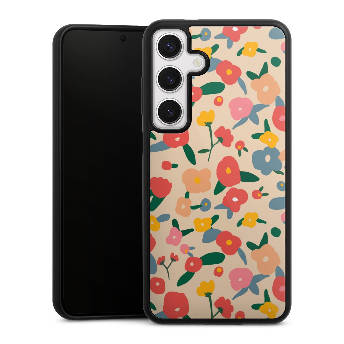 We print your design on the back of the glass inlay and then connect it firmly to the silicone case ,so that nothing sticks out and everything looks like it was cast from one piece. In addition, the sturdy glass element is protected from scratches by an additional coating and ensures a slight reflection on the shiny print image.