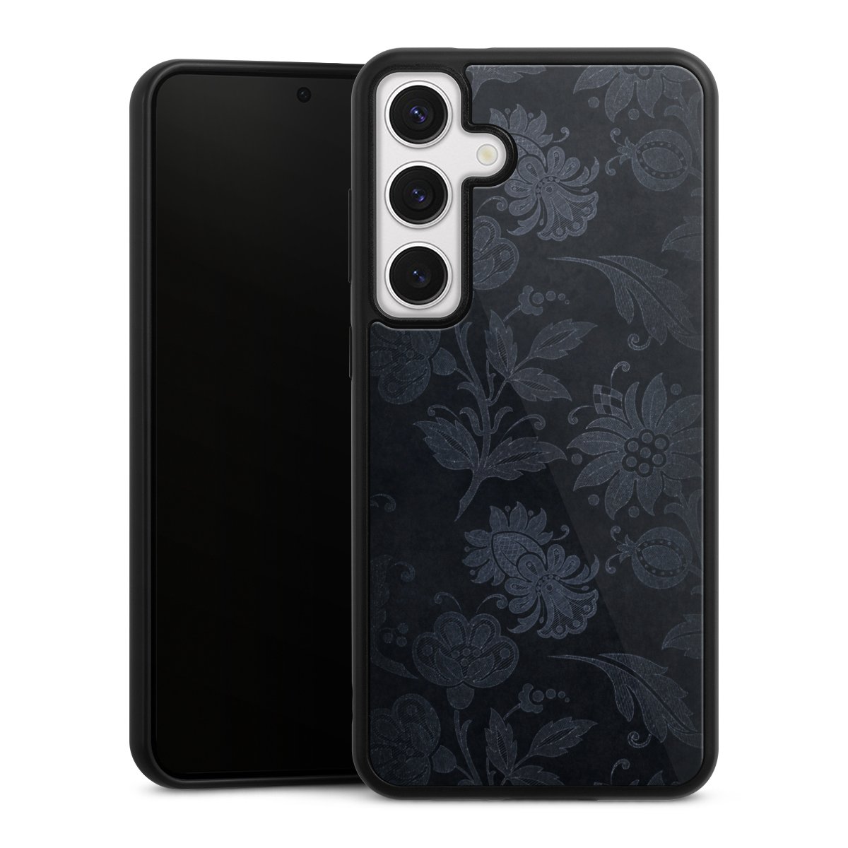 We print your design on the back of the glass inlay and then connect it firmly to the silicone case ,so that nothing sticks out and everything looks like it was cast from one piece. In addition, the sturdy glass element is protected from scratches by an additional coating and ensures a slight reflection on the shiny print image.