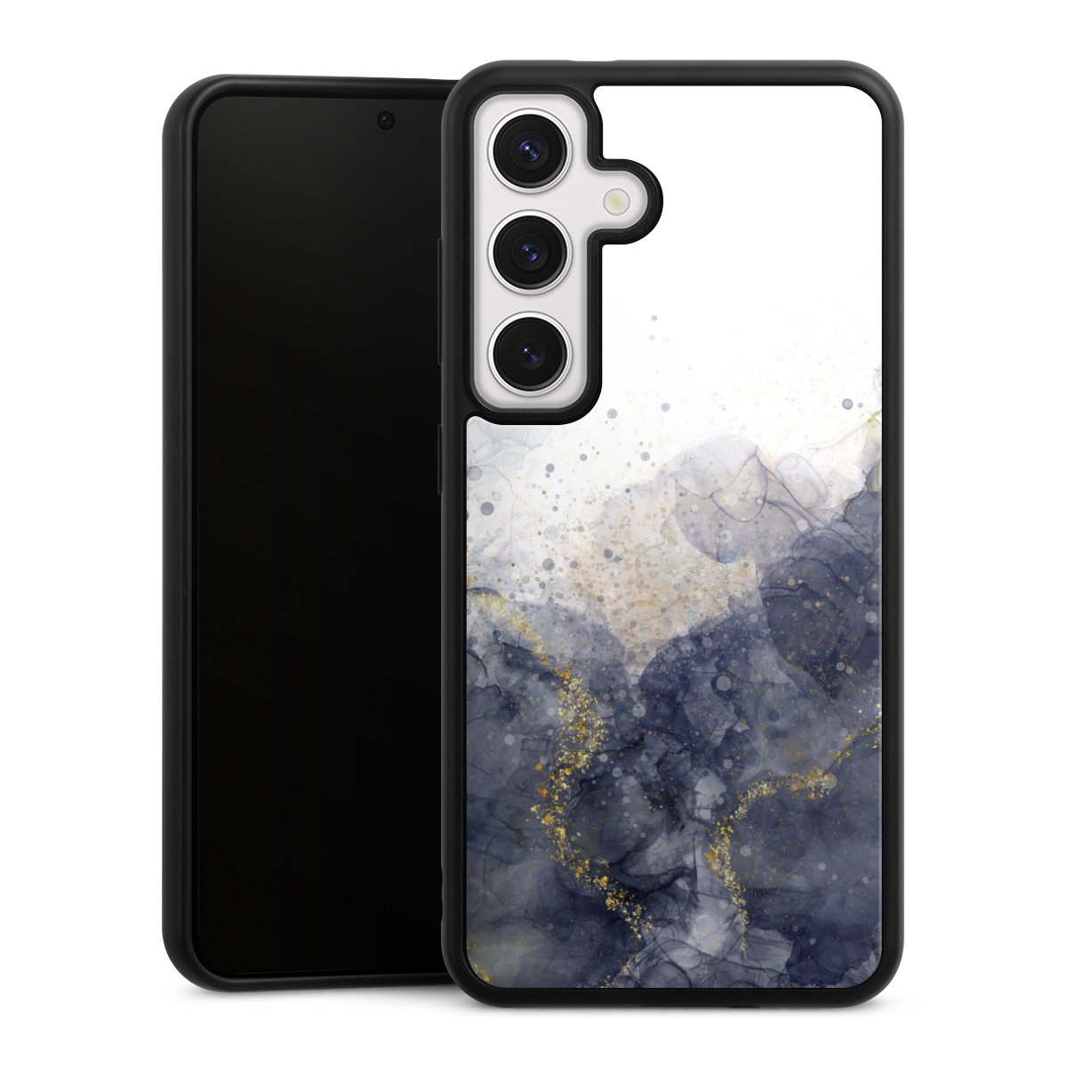 We print your design on the back of the glass inlay and then connect it firmly to the silicone case ,so that nothing sticks out and everything looks like it was cast from one piece. In addition, the sturdy glass element is protected from scratches by an additional coating and ensures a slight reflection on the shiny print image.
