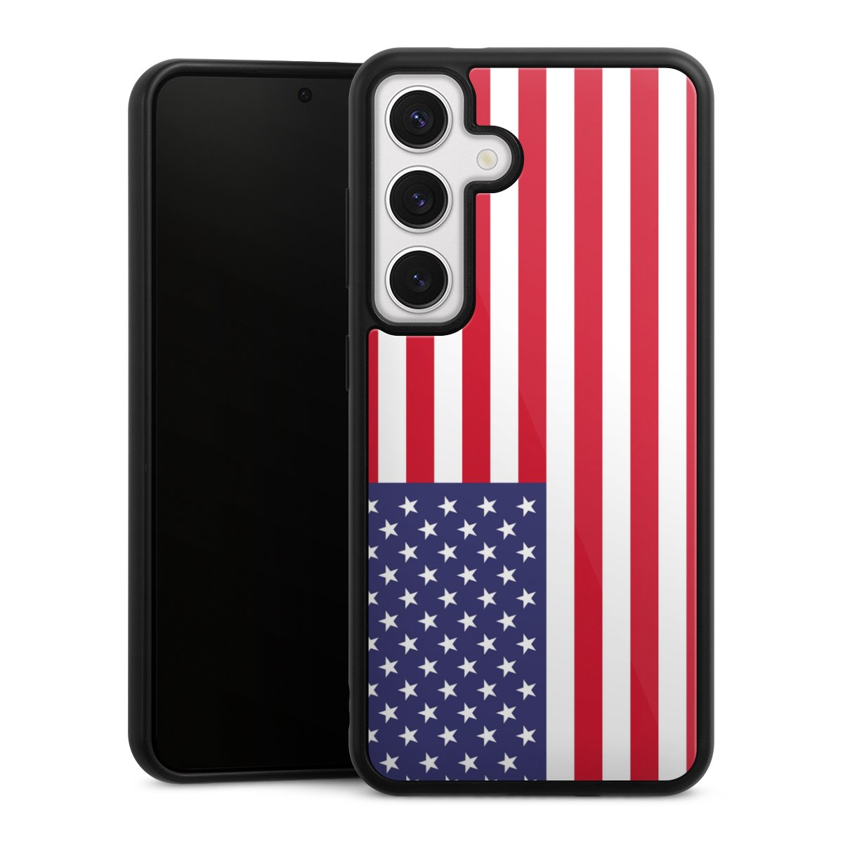 We print your design on the back of the glass inlay and then connect it firmly to the silicone case ,so that nothing sticks out and everything looks like it was cast from one piece. In addition, the sturdy glass element is protected from scratches by an additional coating and ensures a slight reflection on the shiny print image.