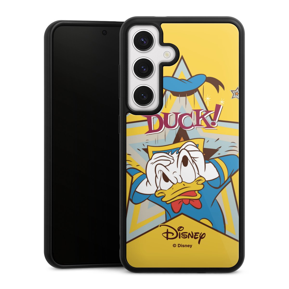 We print your design on the back of the glass inlay and then connect it firmly to the silicone case ,so that nothing sticks out and everything looks like it was cast from one piece. In addition, the sturdy glass element is protected from scratches by an additional coating and ensures a slight reflection on the shiny print image.