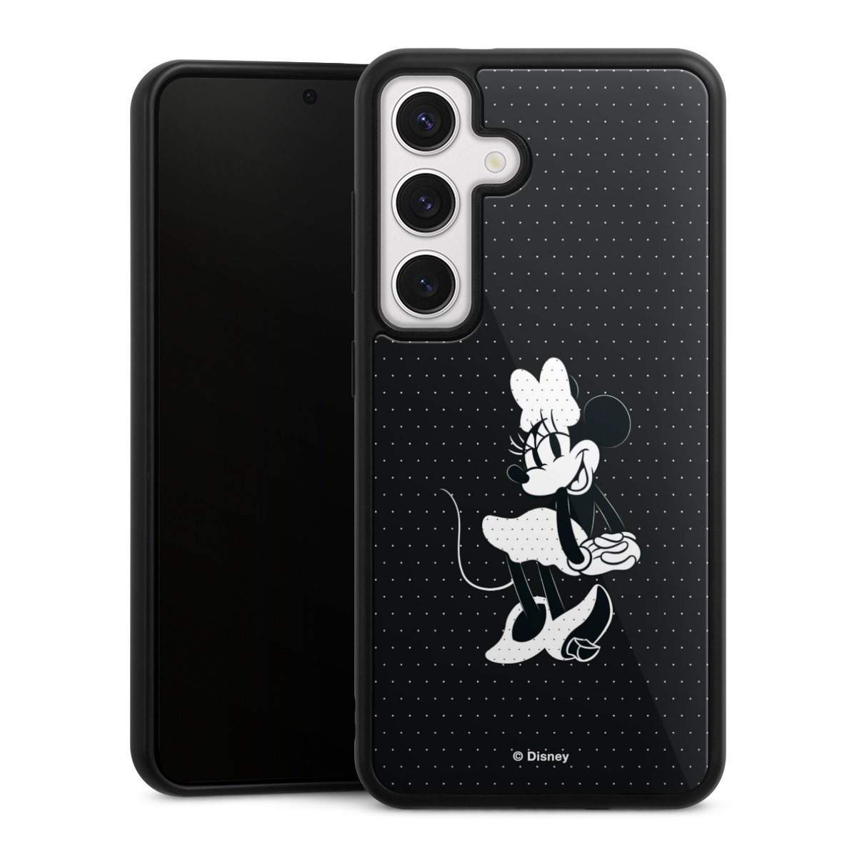 We print your design on the back of the glass inlay and then connect it firmly to the silicone case ,so that nothing sticks out and everything looks like it was cast from one piece. In addition, the sturdy glass element is protected from scratches by an additional coating and ensures a slight reflection on the shiny print image.