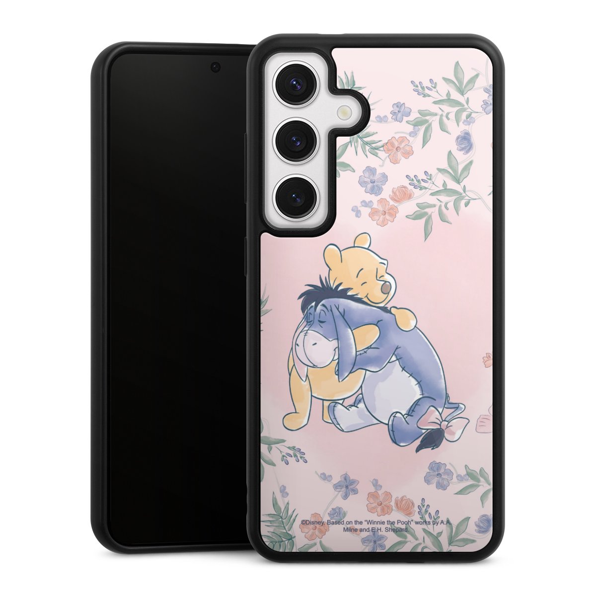 We print your design on the back of the glass inlay and then connect it firmly to the silicone case ,so that nothing sticks out and everything looks like it was cast from one piece. In addition, the sturdy glass element is protected from scratches by an additional coating and ensures a slight reflection on the shiny print image.