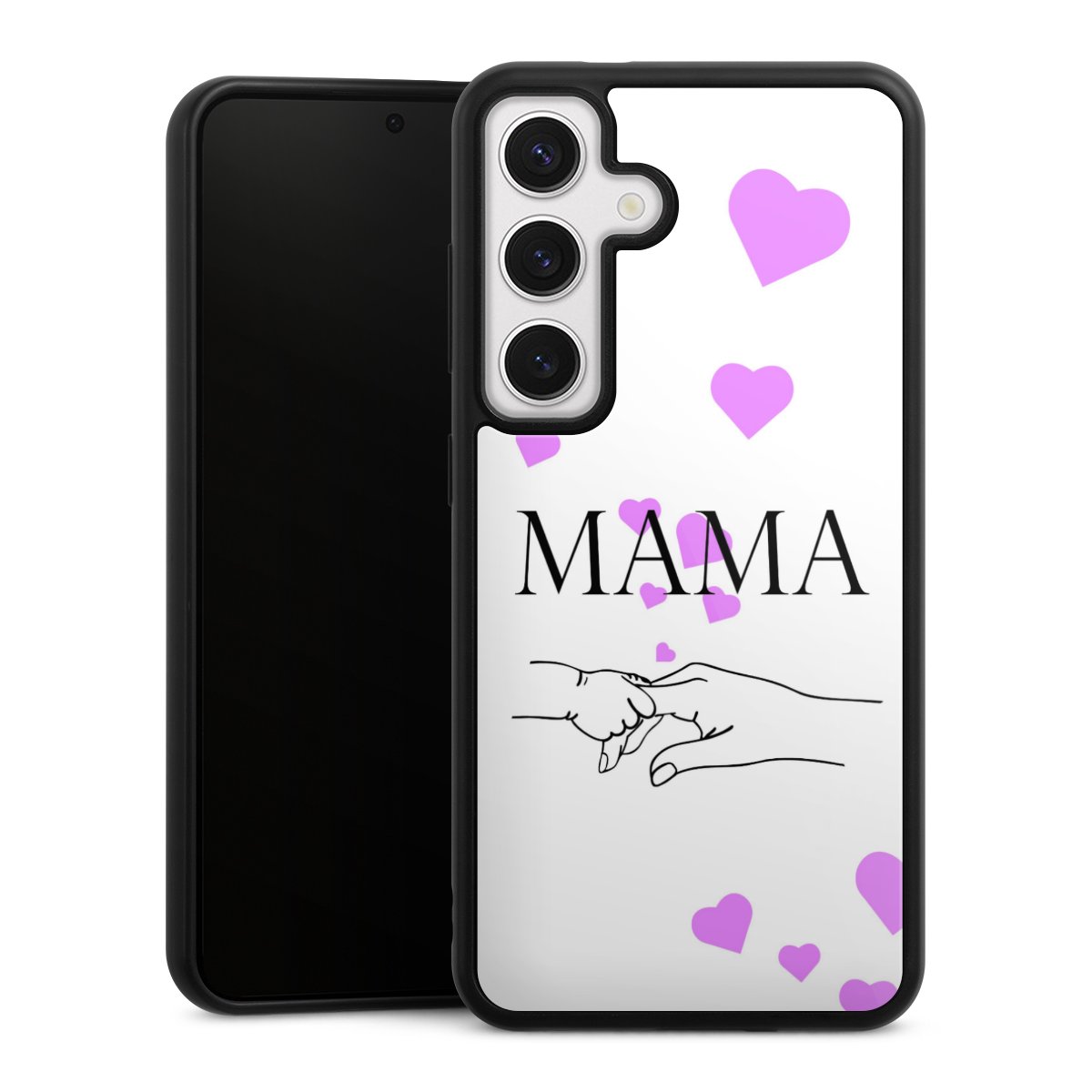 We print your design on the back of the glass inlay and then connect it firmly to the silicone case ,so that nothing sticks out and everything looks like it was cast from one piece. In addition, the sturdy glass element is protected from scratches by an additional coating and ensures a slight reflection on the shiny print image.
