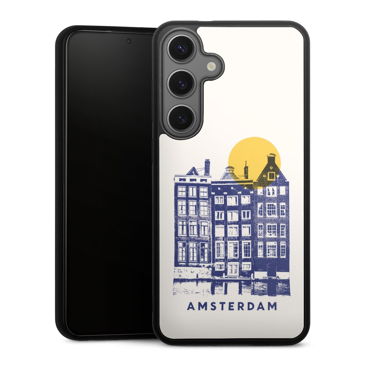 We print your design on the back of the glass inlay and then connect it firmly to the silicone case ,so that nothing sticks out and everything looks like it was cast from one piece. In addition, the sturdy glass element is protected from scratches by an additional coating and ensures a slight reflection on the shiny print image.