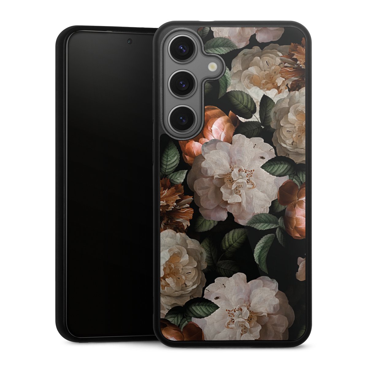 We print your design on the back of the glass inlay and then connect it firmly to the silicone case ,so that nothing sticks out and everything looks like it was cast from one piece. In addition, the sturdy glass element is protected from scratches by an additional coating and ensures a slight reflection on the shiny print image.