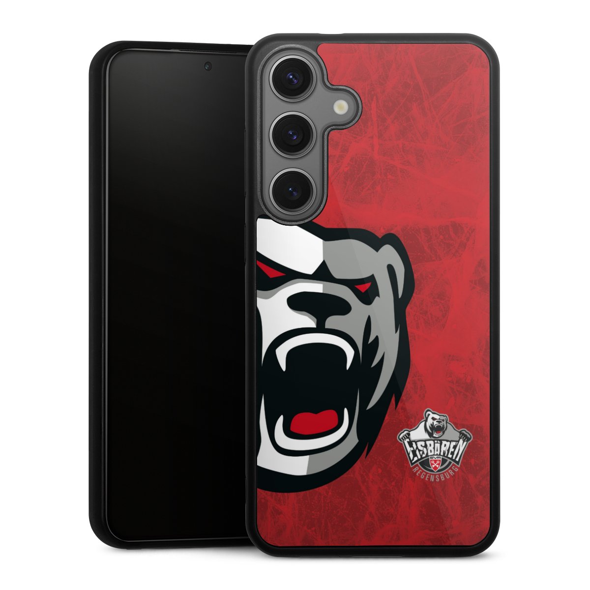 We print your design on the back of the glass inlay and then connect it firmly to the silicone case ,so that nothing sticks out and everything looks like it was cast from one piece. In addition, the sturdy glass element is protected from scratches by an additional coating and ensures a slight reflection on the shiny print image.