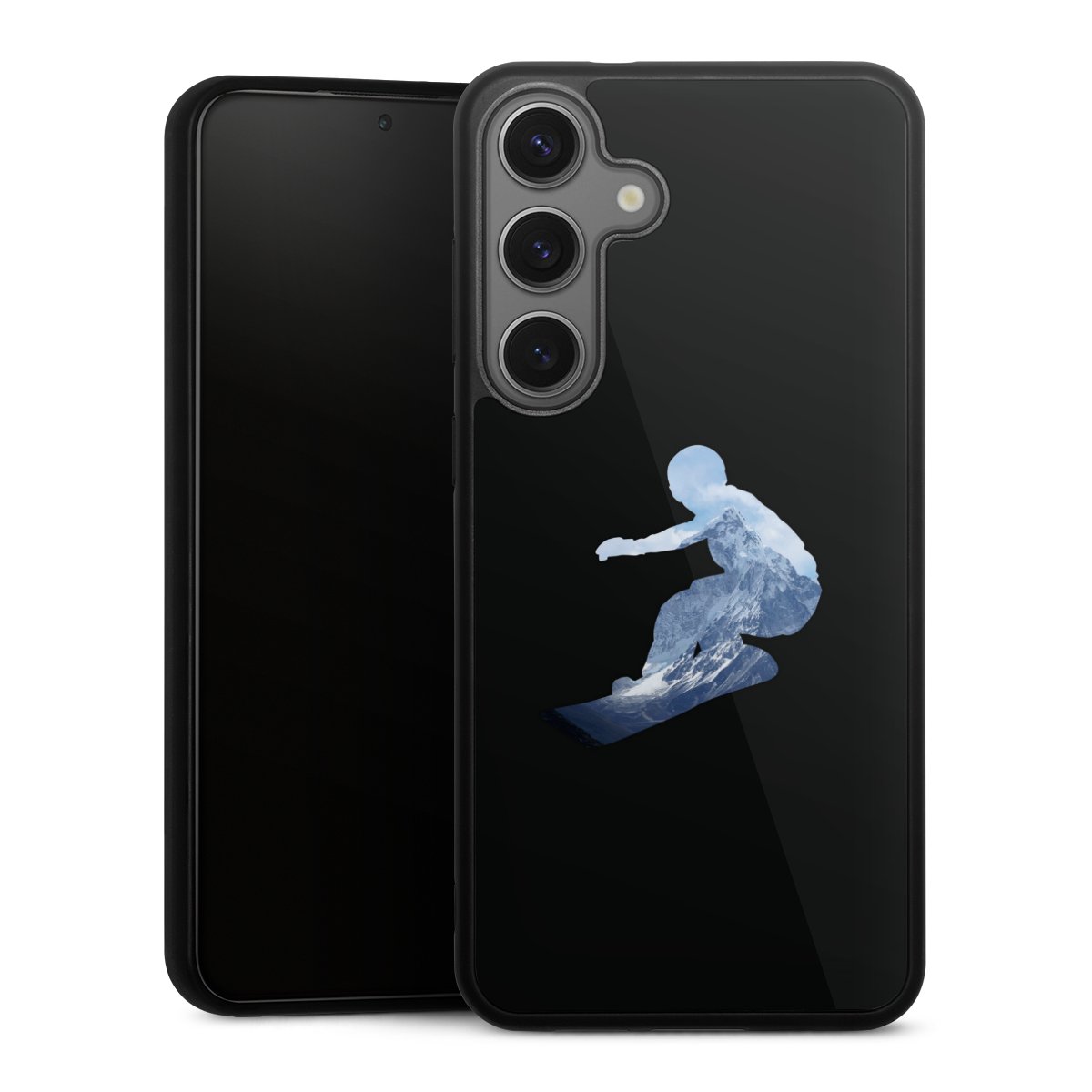 We print your design on the back of the glass inlay and then connect it firmly to the silicone case ,so that nothing sticks out and everything looks like it was cast from one piece. In addition, the sturdy glass element is protected from scratches by an additional coating and ensures a slight reflection on the shiny print image.