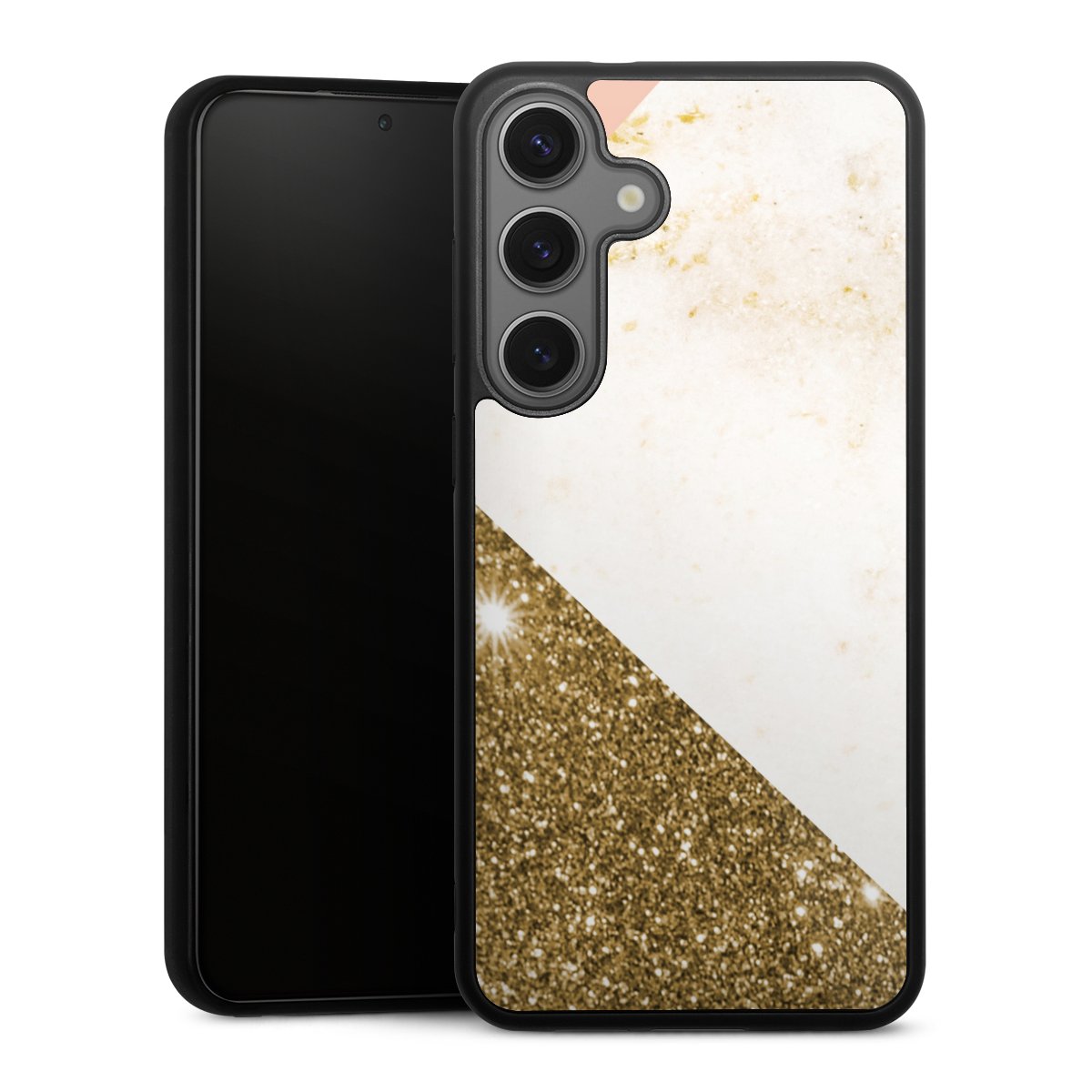 The contrast between the matte black TPU on the sides and the glossy glass surface not only makes the Gallery Case a fest for the eyes, but also a real treat for the hands: The glass gives the phone a pleasantly smooth back and the soft silicone edge provides the necessary grip.