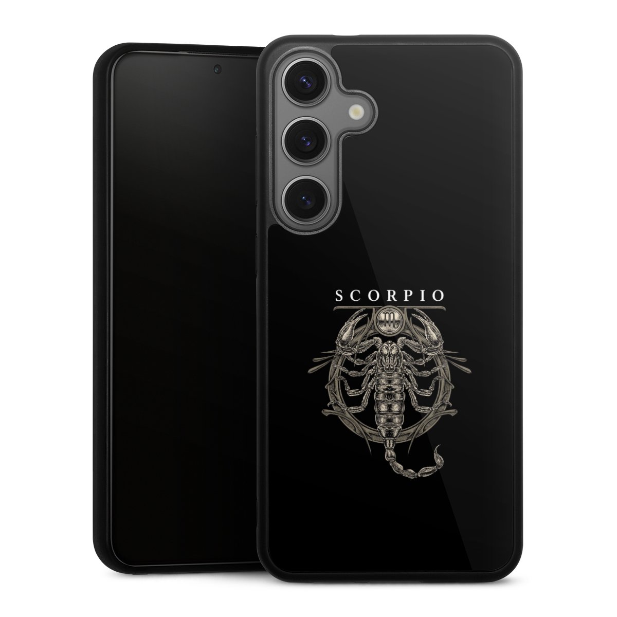 We print your design on the back of the glass inlay and then connect it firmly to the silicone case ,so that nothing sticks out and everything looks like it was cast from one piece. In addition, the sturdy glass element is protected from scratches by an additional coating and ensures a slight reflection on the shiny print image.