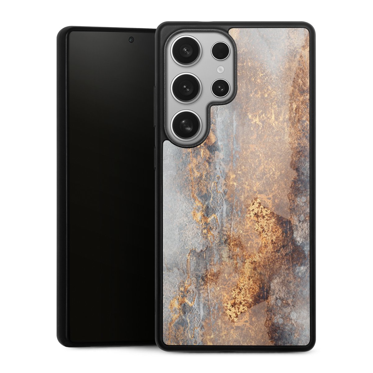 We print your design on the back of the glass inlay and then connect it firmly to the silicone case ,so that nothing sticks out and everything looks like it was cast from one piece. In addition, the sturdy glass element is protected from scratches by an additional coating and ensures a slight reflection on the shiny print image.