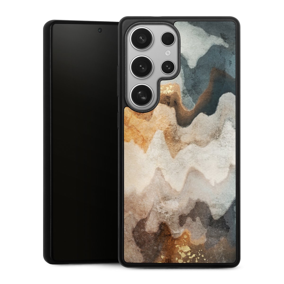 We print your design on the back of the glass inlay and then connect it firmly to the silicone case ,so that nothing sticks out and everything looks like it was cast from one piece. In addition, the sturdy glass element is protected from scratches by an additional coating and ensures a slight reflection on the shiny print image.