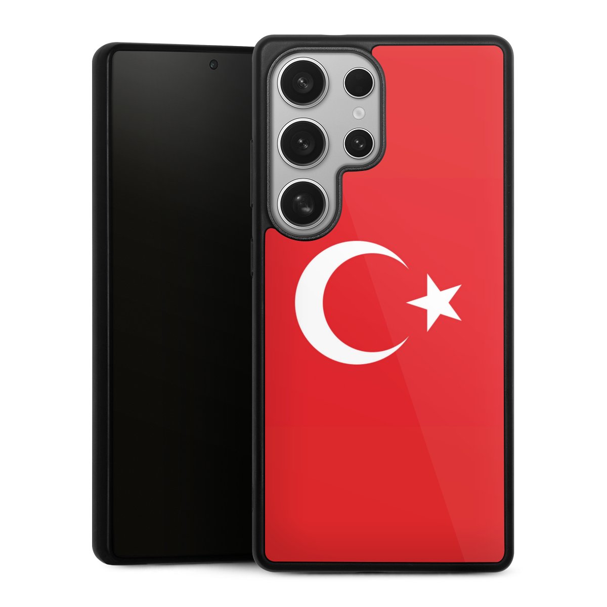 We print your design on the back of the glass inlay and then connect it firmly to the silicone case ,so that nothing sticks out and everything looks like it was cast from one piece. In addition, the sturdy glass element is protected from scratches by an additional coating and ensures a slight reflection on the shiny print image.