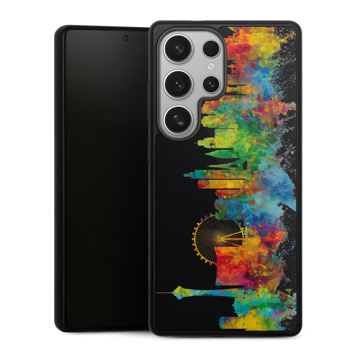 We print your design on the back of the glass inlay and then connect it firmly to the silicone case ,so that nothing sticks out and everything looks like it was cast from one piece. In addition, the sturdy glass element is protected from scratches by an additional coating and ensures a slight reflection on the shiny print image.