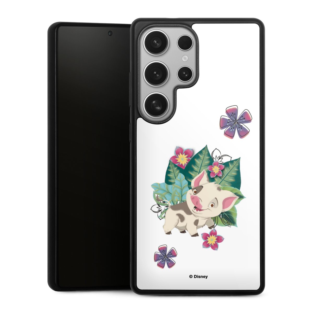 We print your design on the back of the glass inlay and then connect it firmly to the silicone case ,so that nothing sticks out and everything looks like it was cast from one piece. In addition, the sturdy glass element is protected from scratches by an additional coating and ensures a slight reflection on the shiny print image.