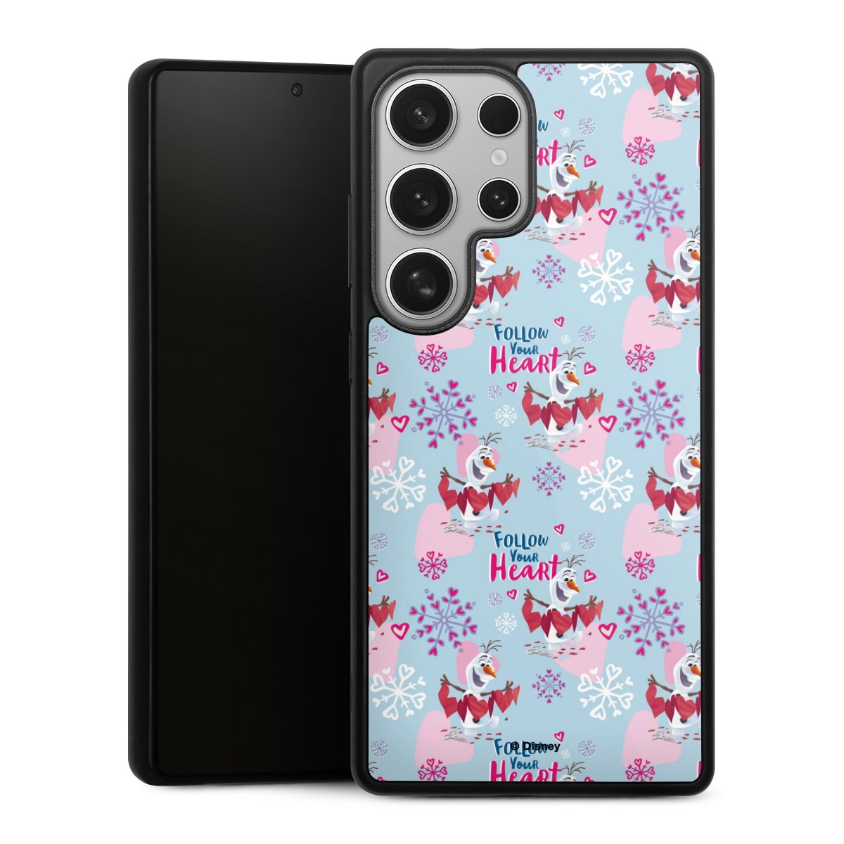 We print your design on the back of the glass inlay and then connect it firmly to the silicone case ,so that nothing sticks out and everything looks like it was cast from one piece. In addition, the sturdy glass element is protected from scratches by an additional coating and ensures a slight reflection on the shiny print image.