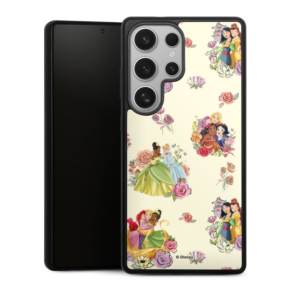 We print your design on the back of the glass inlay and then connect it firmly to the silicone case ,so that nothing sticks out and everything looks like it was cast from one piece. In addition, the sturdy glass element is protected from scratches by an additional coating and ensures a slight reflection on the shiny print image.