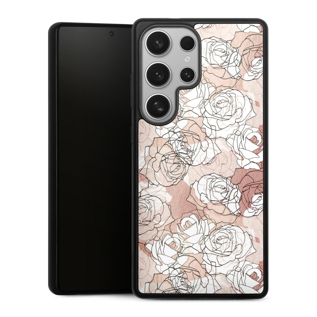 We print your design on the back of the glass inlay and then connect it firmly to the silicone case ,so that nothing sticks out and everything looks like it was cast from one piece. In addition, the sturdy glass element is protected from scratches by an additional coating and ensures a slight reflection on the shiny print image.