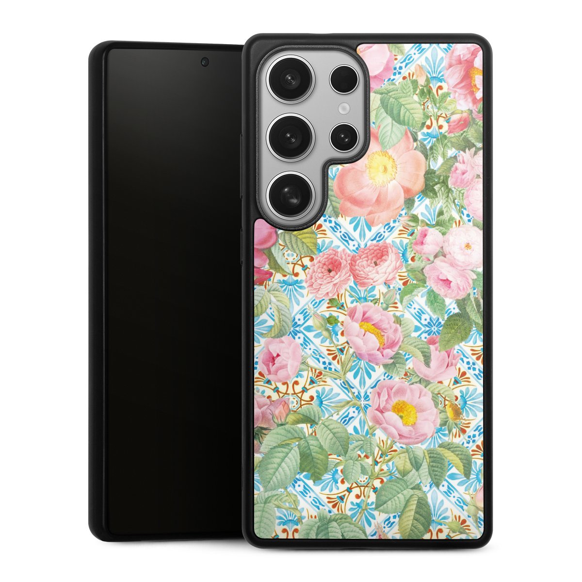 We print your design on the back of the glass inlay and then connect it firmly to the silicone case ,so that nothing sticks out and everything looks like it was cast from one piece. In addition, the sturdy glass element is protected from scratches by an additional coating and ensures a slight reflection on the shiny print image.