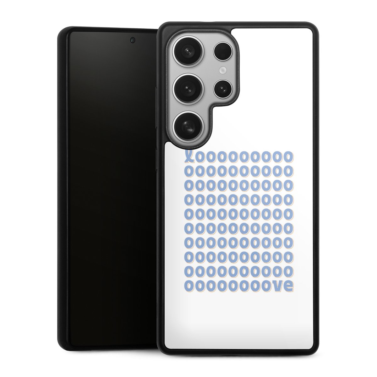We print your design on the back of the glass inlay and then connect it firmly to the silicone case ,so that nothing sticks out and everything looks like it was cast from one piece. In addition, the sturdy glass element is protected from scratches by an additional coating and ensures a slight reflection on the shiny print image.